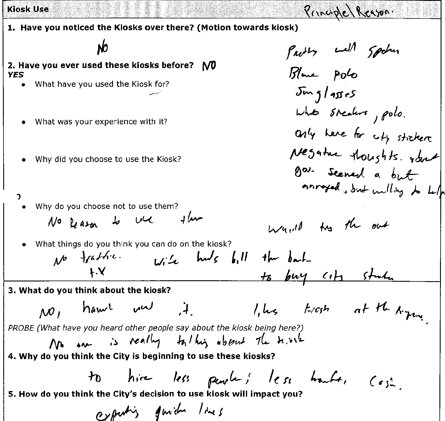 I spoke with the customers in the real-life context was an eye opening experience. The first hour I simply observed the environment, interactions, and processes. I then, spoke with customers waiting in line and those that attempted to use the kiosk. There was so much anger and frustration with how long the lines were in order to pay their tickets. Many customers only had a small window of time (their lunch break) to pay their tickets/bills because they had other obligations after work. Some customers didn’t even know about the kiosk or were intimidated by it.